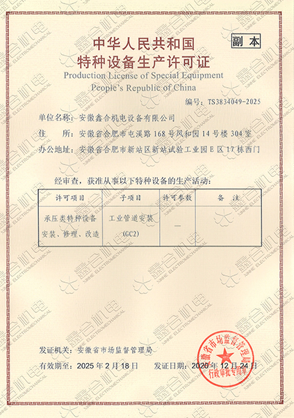 目前我公司具有建筑機電安裝工程專業承包一級資質、總承包二級、GC2壓力管道設計、施工資質?,F有高級工程師5名、高級技師55名、工程師22名、助工25名、技術員22名、各類專業技師50多名,強大的技術力量及精良的施工隊伍,為客戶提供全方位服務。 公司本著“一切為了用戶”的經營理念,“以品質求生存、以誠信贏市場、以管理促發展”為要求,努力為廣大客戶提供專業,優質、高效的服務。